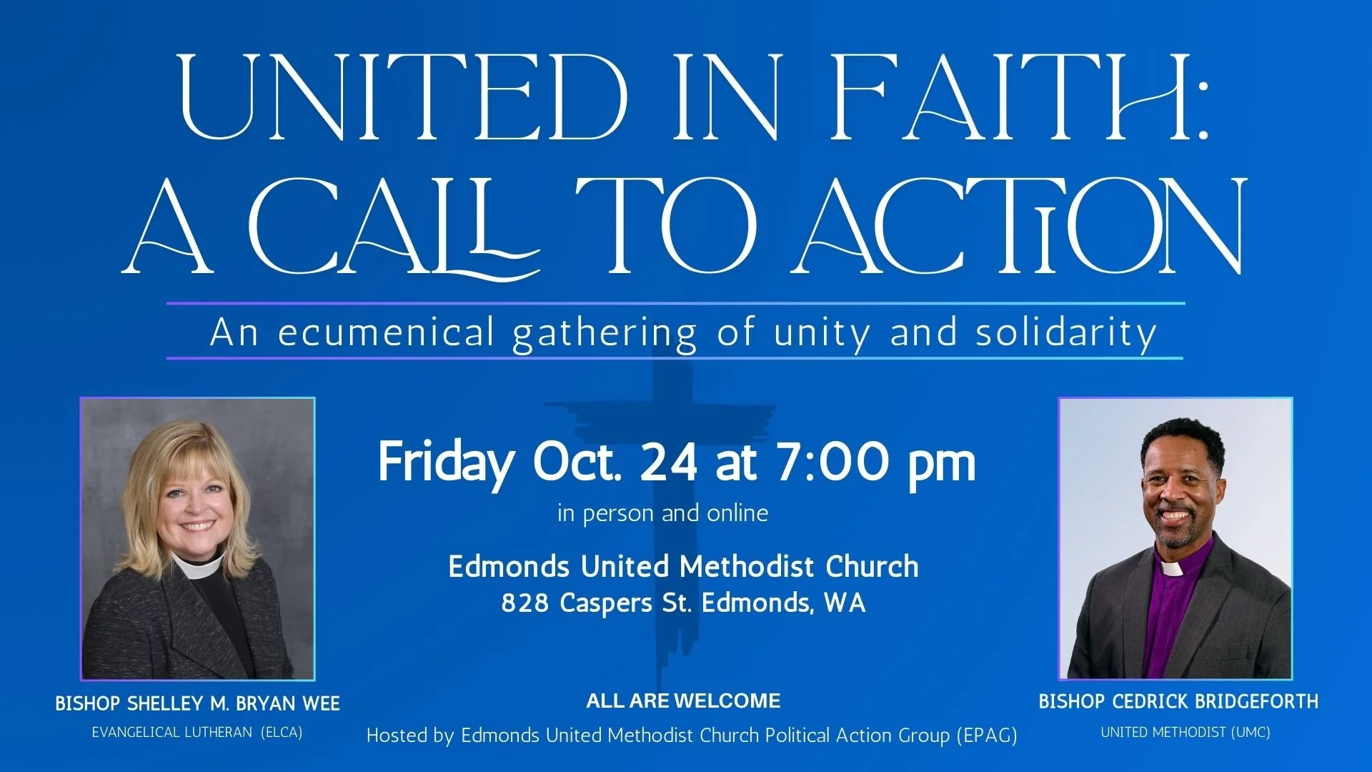 Join us every Sunday morning for worship in-person or online at 10:00 am.